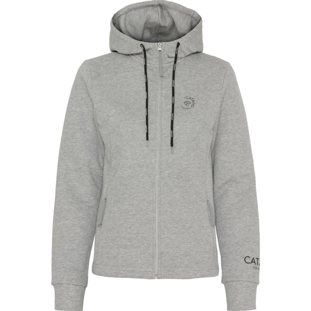 Elegant og enkel sporty hettegenser med glidelås og snøring i hetten fra Catago  Glidelås i metall med blanke sølvtenner foran, som matcher de blanke sølvfargede maljene og snøreendene. Sort og hvit logotape i...